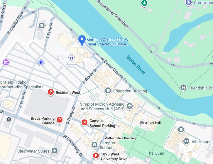 Please allow sufficient time before the event for your travel and parking. Boise traffic is often busier around Morrison Center in relation to events.